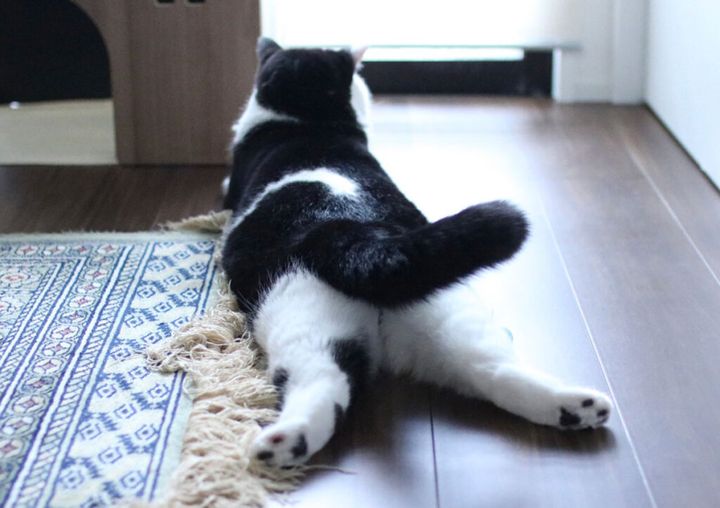 かわいいムチムチふわふわお尻ショット〜。後ろ姿までかわいくて罪な男でごめんな……。