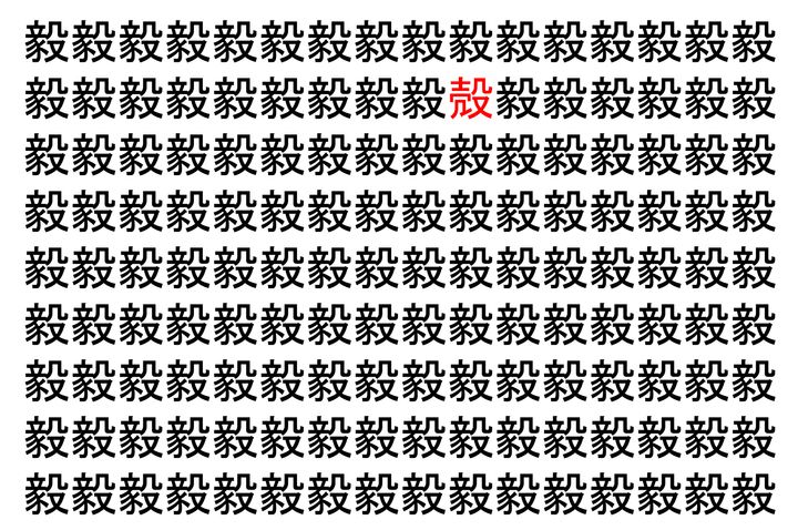画像に並んだたくさんの「毅」という漢字。 その数144個なのですが・・・、実はその中に1つ違う漢字が紛れ込んでいます!!