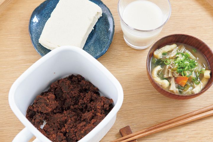 毎日、自家製味噌で作るお味噌汁は、その日冷蔵庫にある野菜や豆腐類、酒粕を入れています。酒粕を足すと風味がぐんとアップ。温かいものを体に入れると気持ちもほっこり。甘酒もよく飲んでいます。