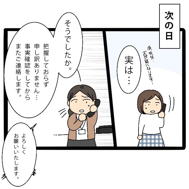 マコちゃんが物を盗んだと言われる事件が起こっていたとは知らなかった担任の先生は、さっそく事実確認をし、夕方さゆりさんに報告をしました。