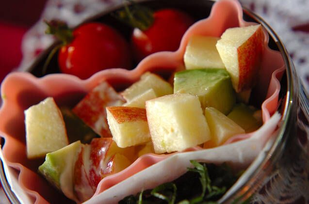 栄養価の高いリンゴとアボカドをマヨネーズとレモン汁で和えた簡単サラダ。それぞれ同じ大きさに切ると見栄えが良くなります。食感も楽しめる逸品です。