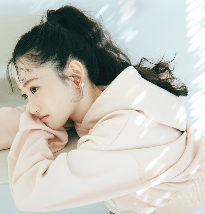 一ノ瀬美空(乃木坂46)。ar3月号より フーディ¥13,200/エイミー イストワール ルミネエスト新宿店 スカート¥22,000/ハニー ミー ハニー イヤリング¥8,800/マサエ(ロードス)