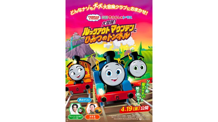 きかんしゃトーマス映画最新作『映画 きかんしゃトーマス 大冒険!ルックアウトマウンテンとひみつのトンネル』が2024年4月19日(金)から全国ロードショーとなります。「ソドー島最大のナゾを解き明かせ!」をテーマに、トーマスたちが新しい仲間と一緒に謎解きの冒険に出発。