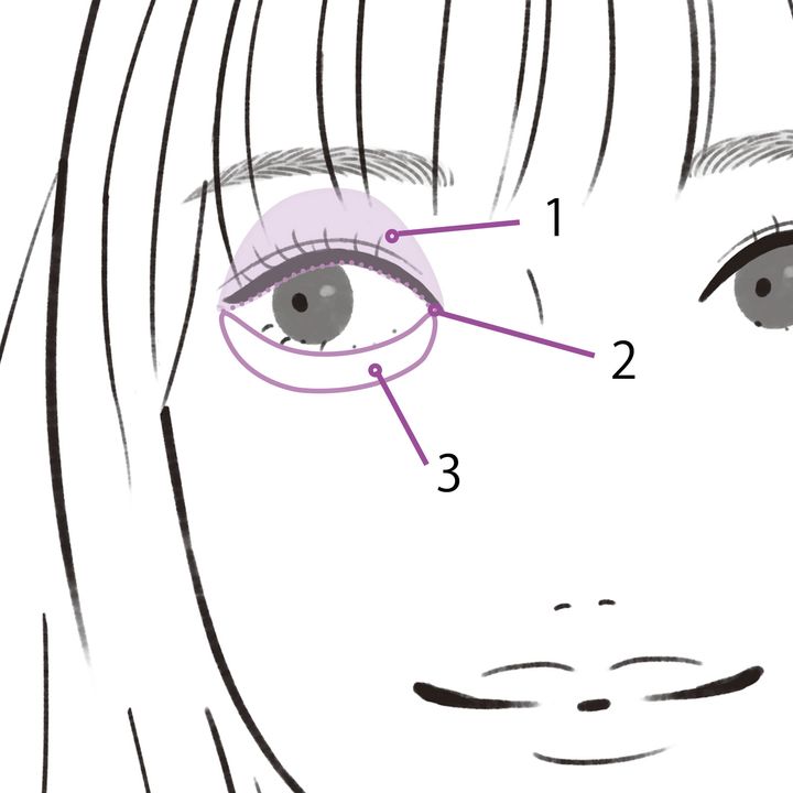 上まぶたのインラインにピンクブラウンのペンシルでラインを引きます。目尻は2mmだけオーバーさせます。