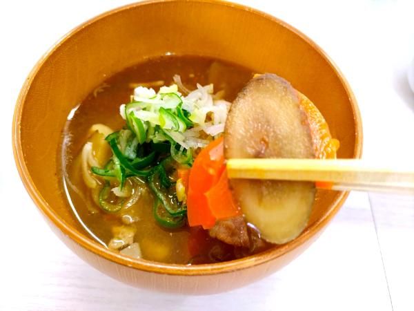 おむすびに、汁物をプラスすると更に満足感がアップ。体に染み入るようなほっとする味わいは、日本人で良かったと思える瞬間です。豚汁は売切れになることが多いので、注文は早めの時間がおすすめ!