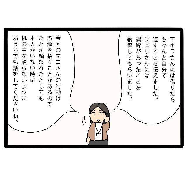 「消しゴムはマコのだよ」とアキラ君が言った事により、マコちゃんが盗んだという誤解はようやく解けたはずでしたが・・・。