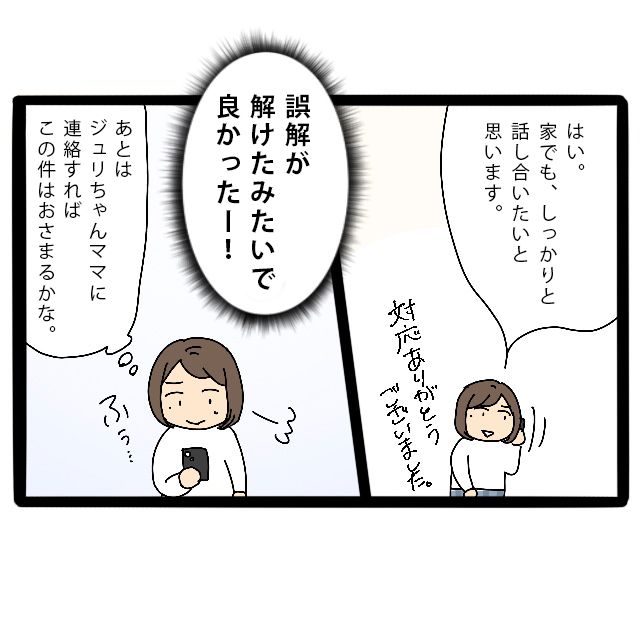 あとはジュリちゃんママに連絡をしたら、一件落着かと思っていました。