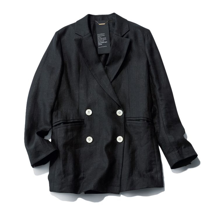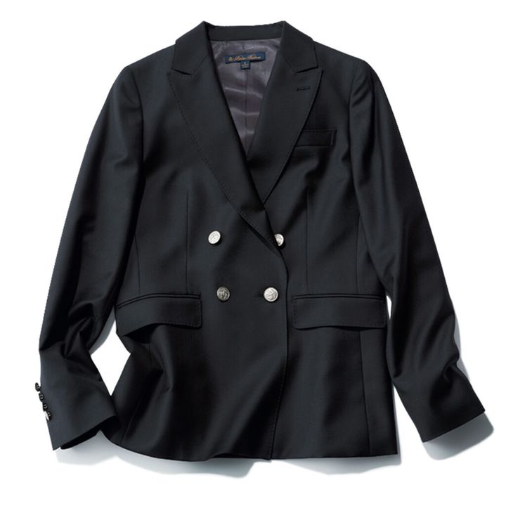 アメリカントラッドの老舗からは、なめらかな光沢感と肉厚感がデイリースタイルの完成度を高めるダブルのテーラードが登場。どんなトップスも品よくまとまります。