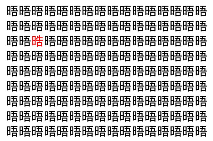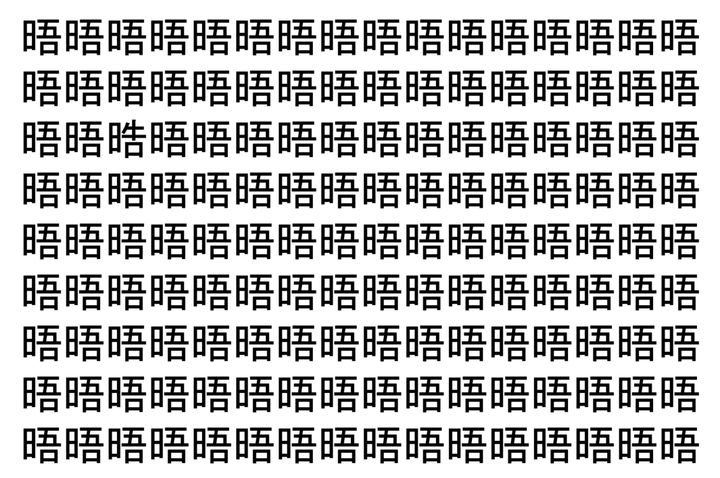 【脳トレ】「晤」の中に紛れて1つ違う文字がある!?あなたは何秒で探し出せるかな??【違う文字を探せ!】