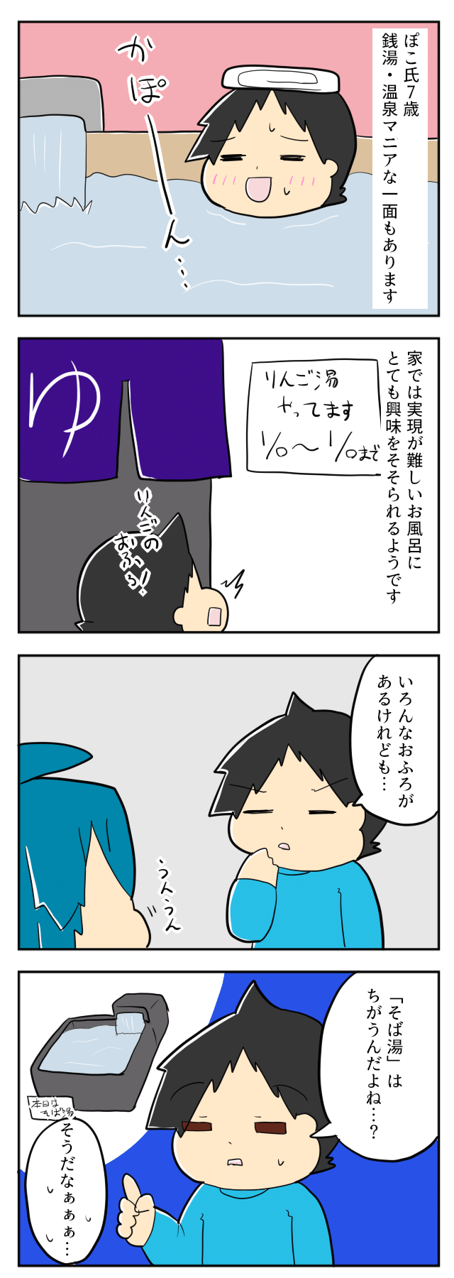 3. それは違う(汗)温泉好きな7歳息子の素朴な疑問「そば湯は・・」|mochikoの育児マンガ