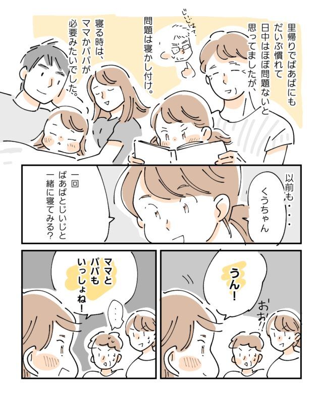 「くうちゃん、一回ばあばとじいじと一緒に寝てみる?」