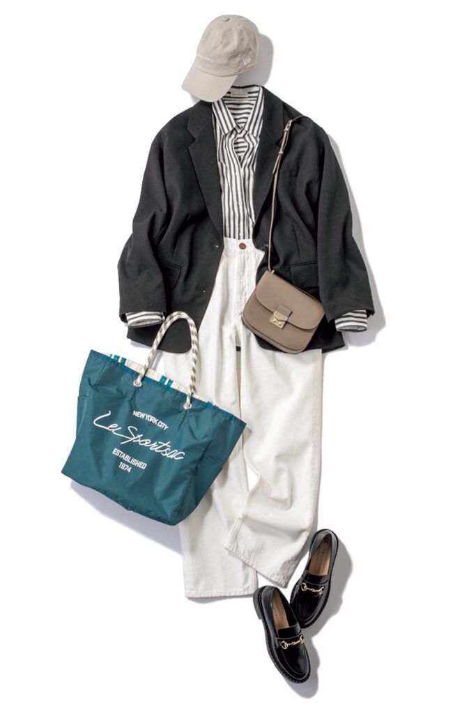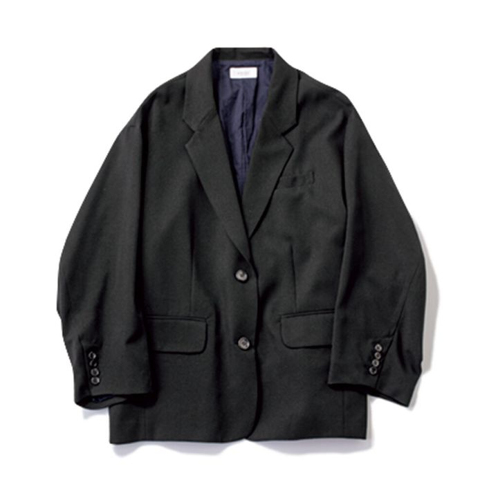 「着なきゃいけない」じゃなくて「着たくなる」ジャケットを。オーバーサイズを選べばきちんとスタイルが新鮮に。¥26,400(エミ/エミ ニュウマン新宿店)