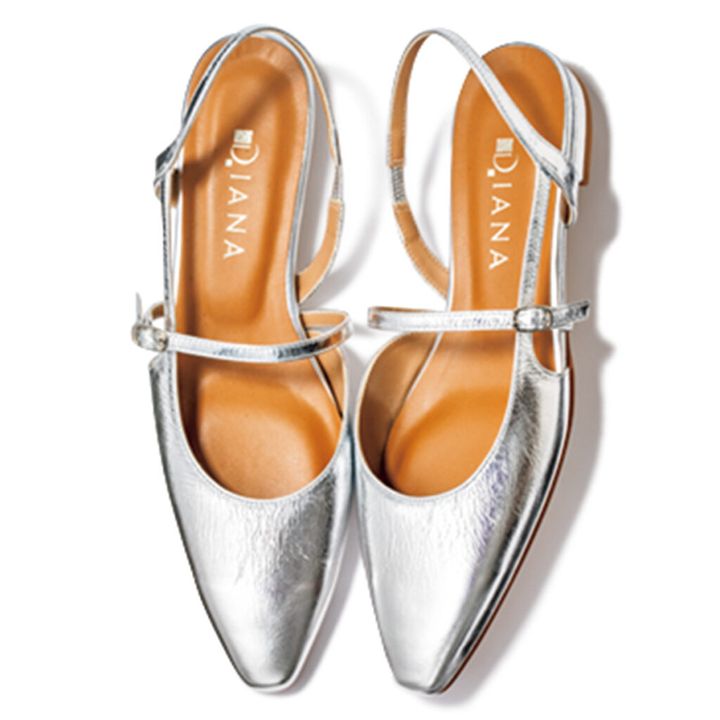 今グッと新鮮に見えるメリージェーン。トレンドのメタリックシルバーで取り入れると足元からトレンド感が漂いオシャレ上級者見えも。¥16,500(ダイアナ/ダイアナ 銀座本店)