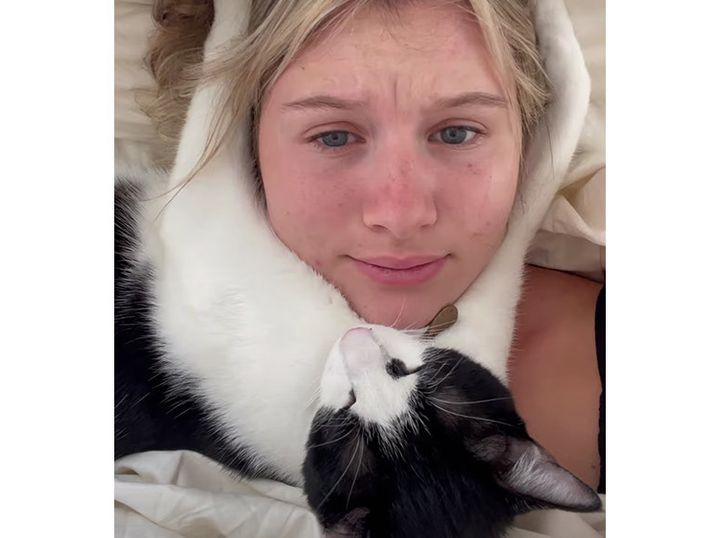 3. いつも離したくないくらい大好き♪ 顔を抱きしめたまま眠る猫さん。