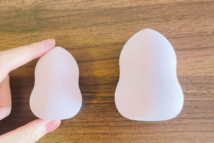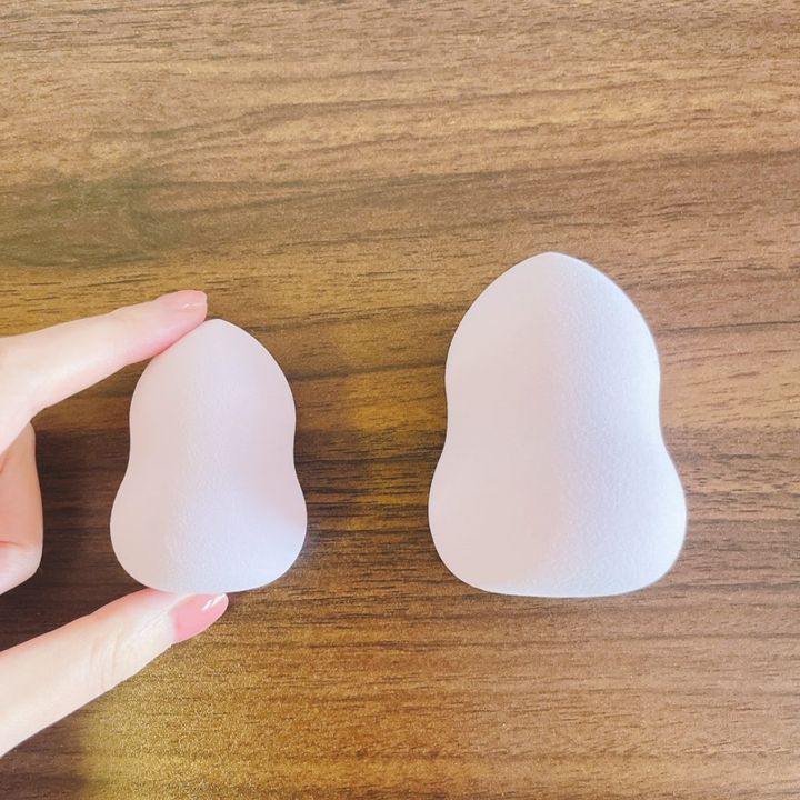 水を含ませるとかなり大きくなるのですが、柔らかくふわふわになり肌への密着度が増すので、メイクが崩れにくくなりますよ。