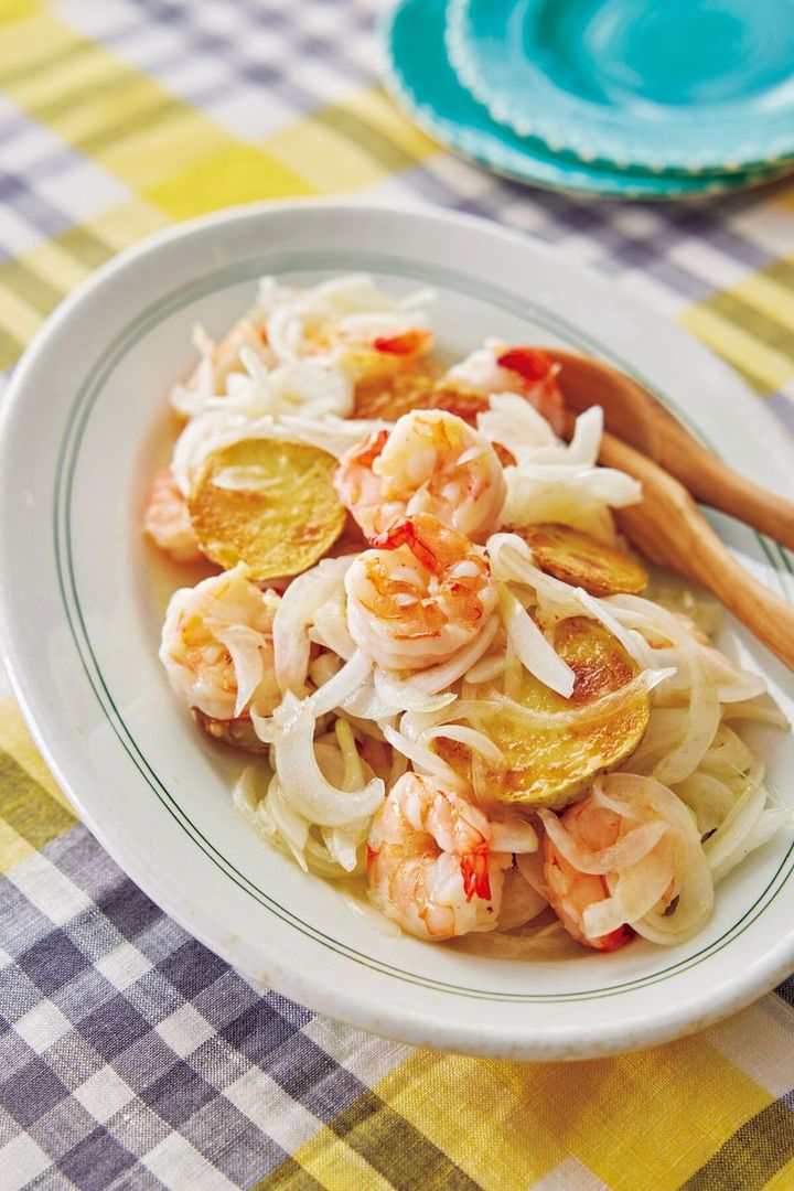 3. おいしすぎて一瞬でなくなる……!『えびと新じゃがの新玉ねぎマリネ』のレシピ【春らしいおかずサラダ】