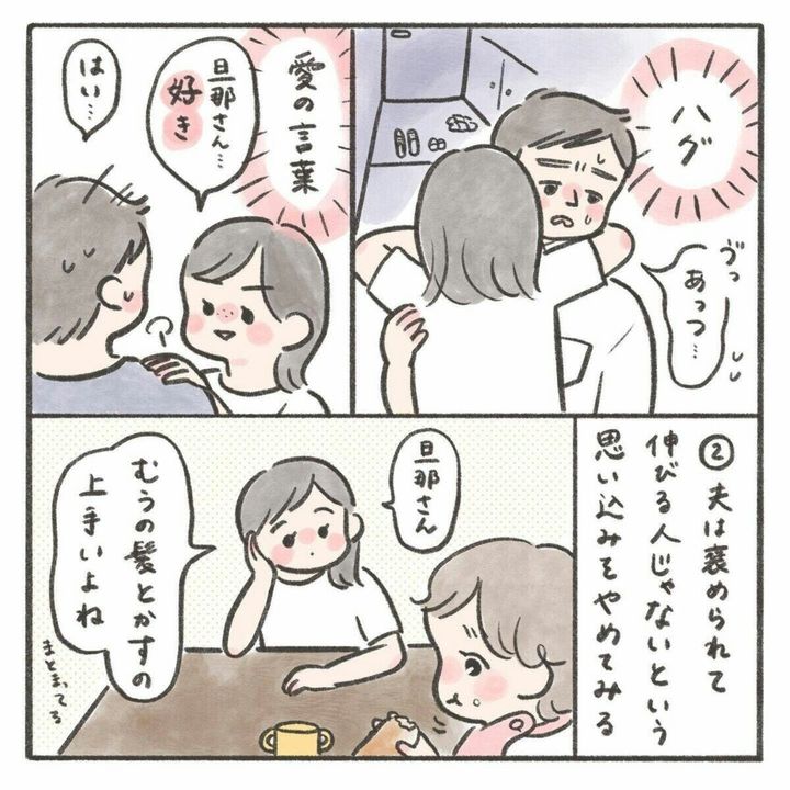 特に、不機嫌なパートナーが側にいるのはツラいものですね。子育て中はお互いに余裕がなくなってしまうからこそ、感謝や愛の言葉、忘れずに伝えたいと思いました。同じように悩む夫婦にとって、参考になるエピソードが満載の作品。夫婦円満のため、家族のために、ぜひマネしてみてくださいね。