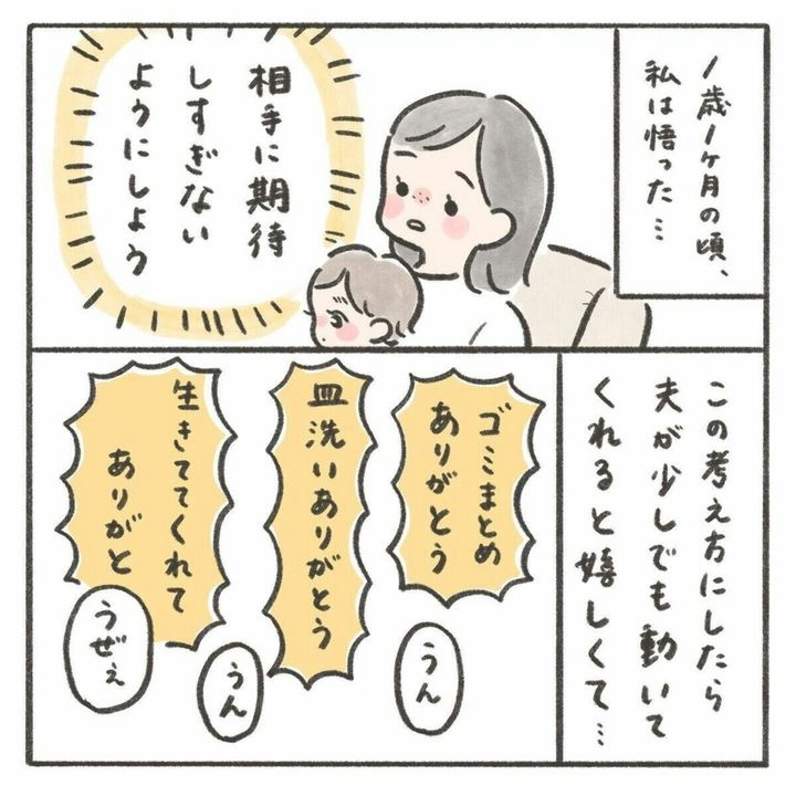 夫が急にレベルアップした理由は、miiさんの「ありがとう」の言葉でした。普段、当たり前だと思ってしまうと、感謝の言葉を忘れてしまいがちですね。ありがとうと言われたことで、育児への積極性が戻った夫。ほんの数分でも、子どもを外に連れ出してくれると、ホッとしますね。