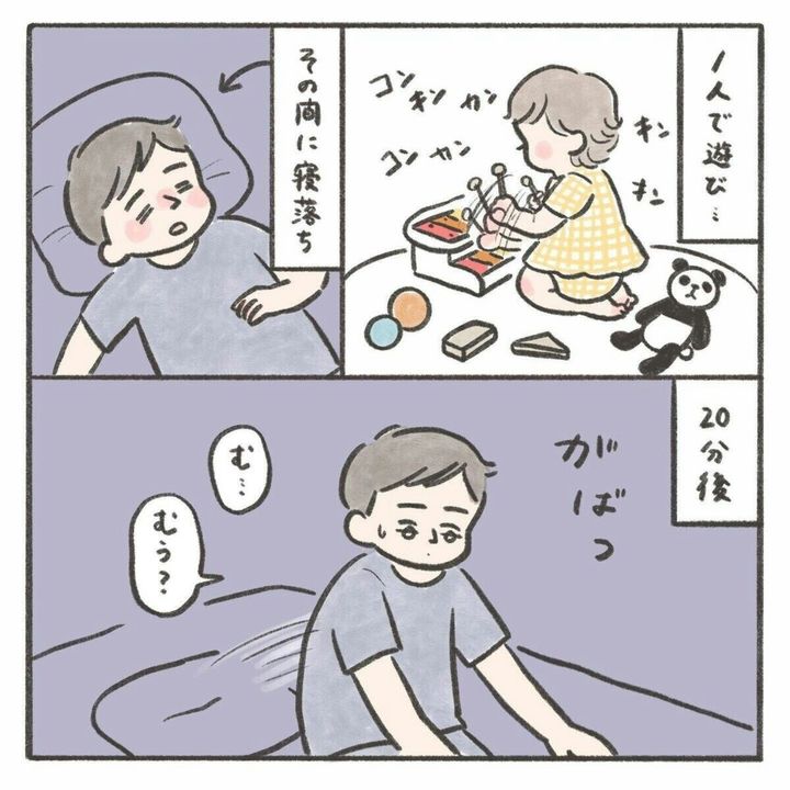 今まで、寝かしつけは絶対にママじゃないと寝なかった娘・むぅちゃん。ところが、眠気が限界に達すると、1人でも寝ることがわかりました。ときにはママと離れる体験をすることで、子どもの意外な面が見られるものですね。