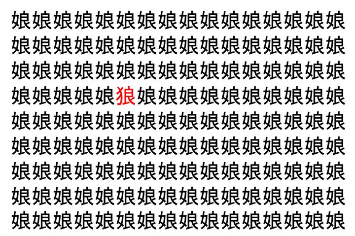2. 【脳トレ】「娘」の中に紛れて1つ違う文字がある!?あなたは何秒で探し出せるかな??【違う文字を探せ!】