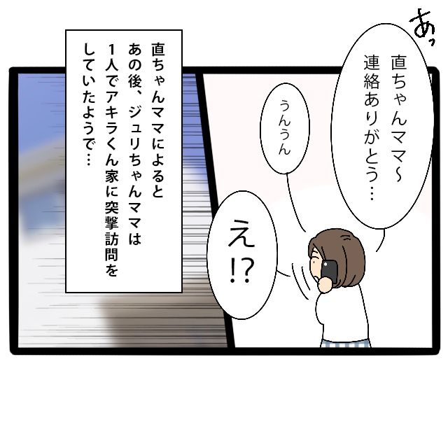 学校でマコちゃんの誤解が解けた日、ジュリちゃんママがアキラ君の家を訪れたそうなのです。