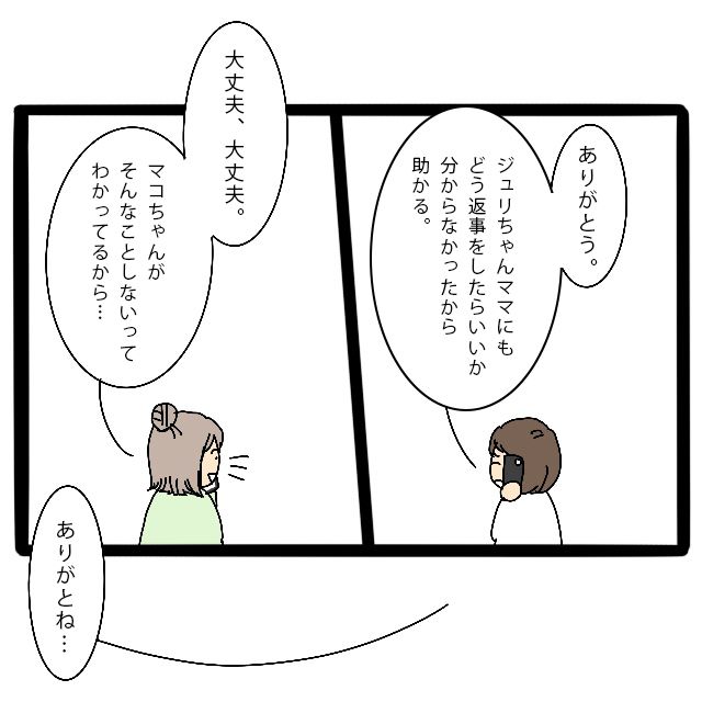マコちゃんママの方も、アキラくんママに気をつかわせてしまったと申し訳ない気持ちになりました。