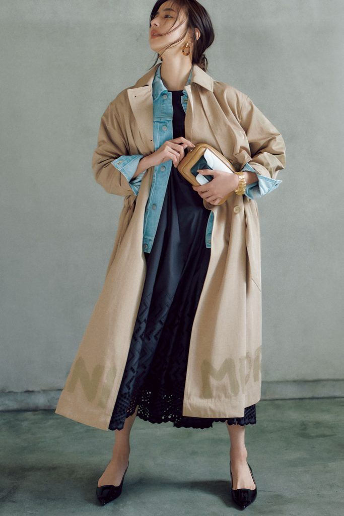 【トレンチ×ワンピはデニムジャケットを重ねてこなれ度アップ】