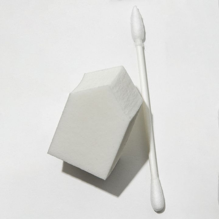 A.朝使ったスポンジを持ち歩き、崩れたところを、軽くポンポンと馴染ませると、皮脂崩れが簡単にリタッチできます。目や口周りは、綿棒でなぞって馴染ませれば、きれいになります。
