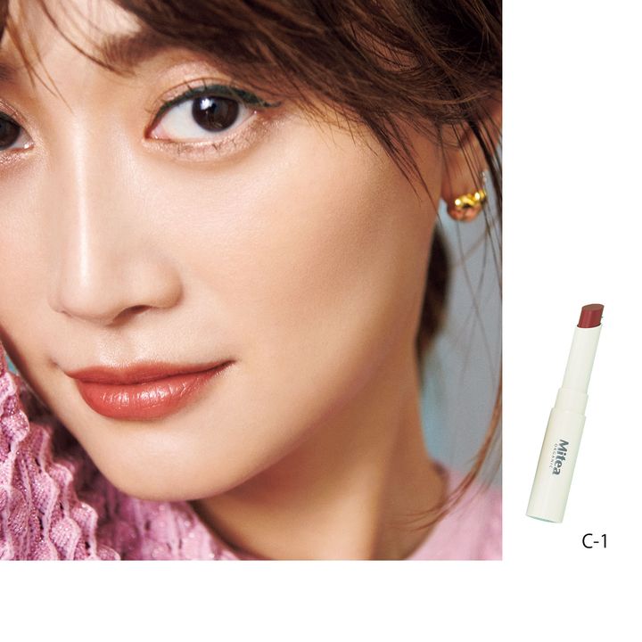 C-1 美容オイル配合でうるおいつつ発色。こなれ感のあるスモーキーピンク。ミティア オーガニック セラムオイルリップスティック 05 ¥995(ミティア オーガニック)