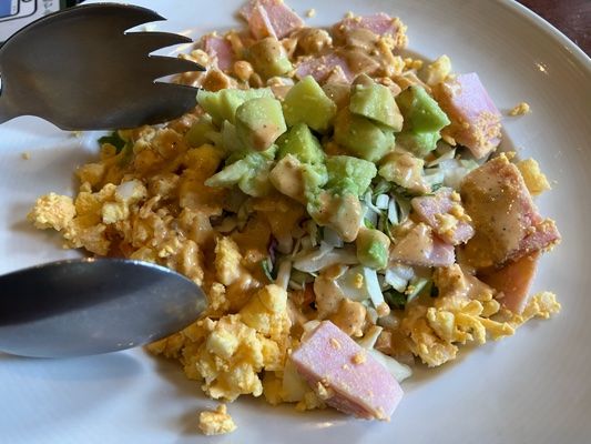 アボカド、キャベツ、ハム、ゆで卵、紫キャベツ等、色々な具材が混ざって、おいしいです。980円
