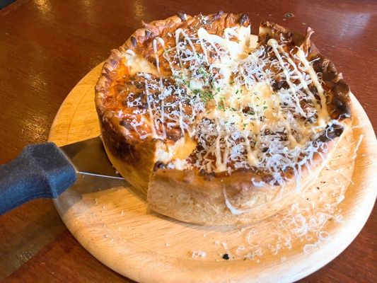 とろけるチーズがたまらないシカゴピザ【ブッチャーリパブリック横浜赤レンガ店】