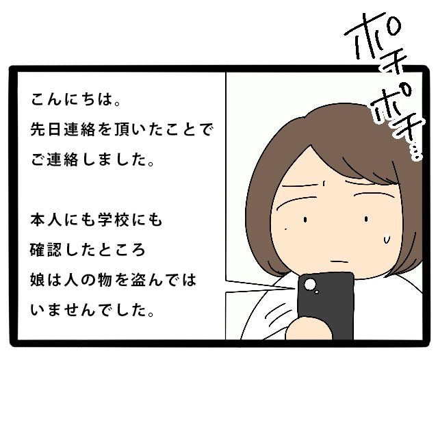 ジュリちゃんママからのメールへどう返信したらよいか悩んでいたさゆりさんでしたが、『マコちゃんにも学校にも確認したところ、盗んでいなかった』と事実を報告することにしました。