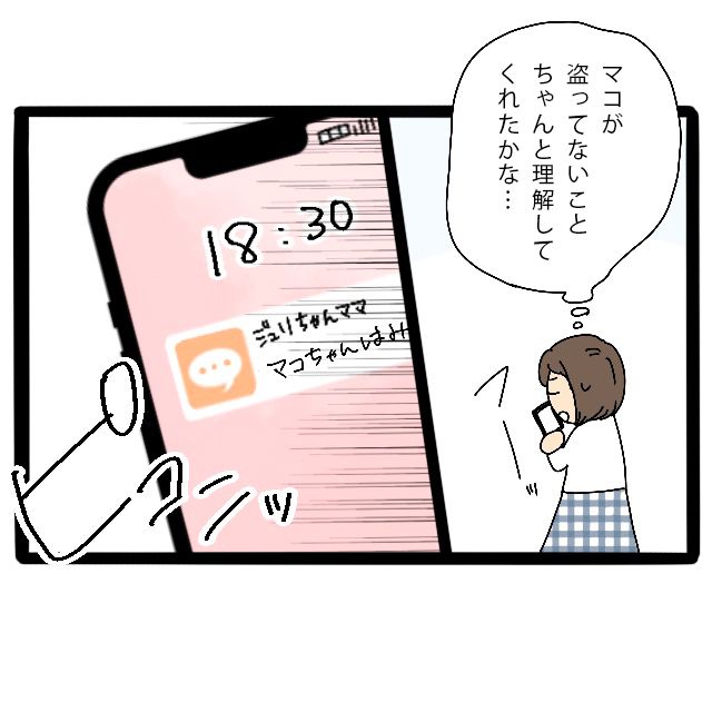 マコちゃんが盗みなどしていないと、ジュリちゃんママがちゃんと理解してくれるか祈るような気持でメール送信すると、