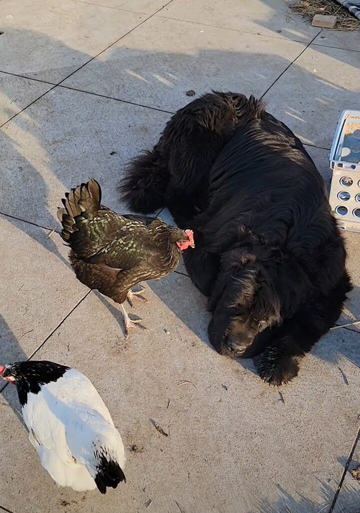 ケビンとスティーブは、よくこうしてお昼寝をニワトリたちに妨害されるそうですが、優しい2匹は怒ることなく一緒に過ごしてあげているそうですよ。 これもまた、日常の光景なんですね~。