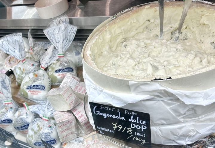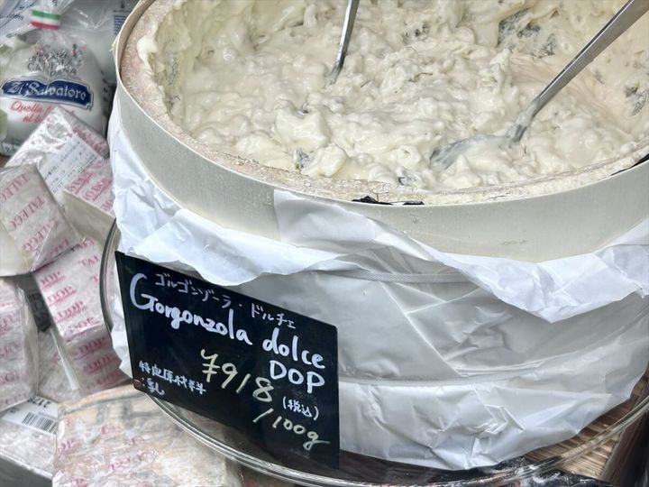 なかでも衝撃だったのは、一番人気のチーズ「ゴルゴンゾーラ・ドルチェ」(100g 918円)。日本テレビ「ニノさん」で紹介されたこともある商品です。