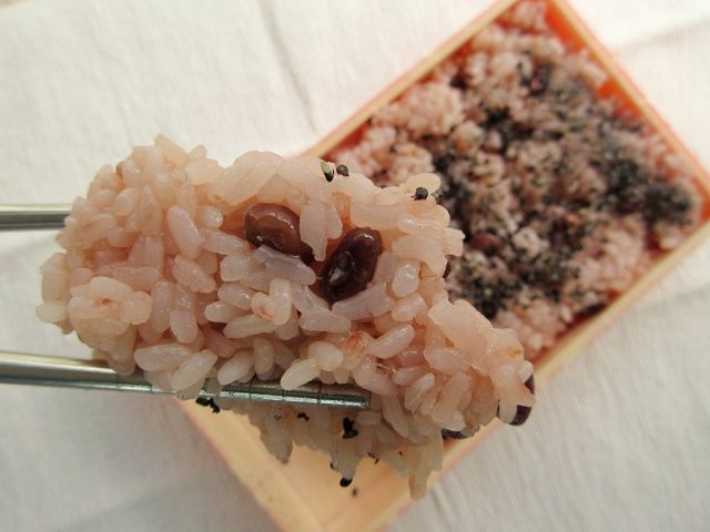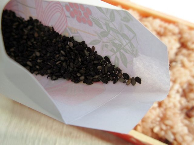 胡麻塩をふりかけた御赤飯