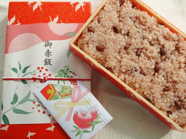 ささげが艶やかな印象の御赤飯