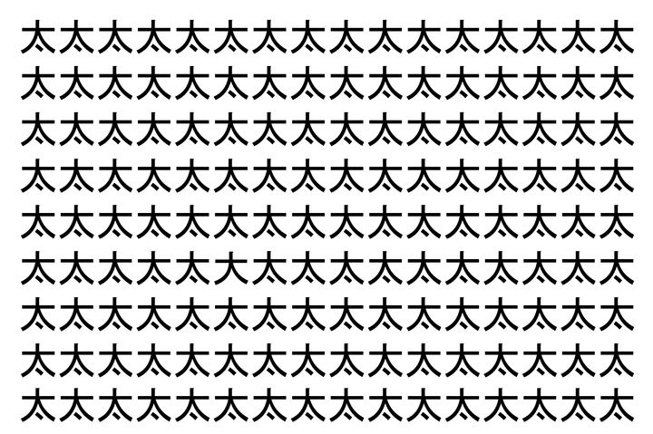 2. 【脳トレ】「太」の中に紛れて1つ違う文字がある!?あなたは何秒で探し出せるかな??【違う文字を探せ!】