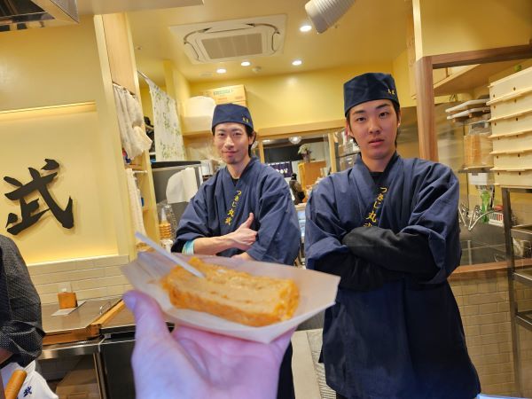 「時の鐘」の下の空間を使って、人気の串のテイクアウトのお店などの専用の列がありました。他の店舗も店先で行列ができていましたが、目抜き通りにはテイクアウトの店が多いので列の進みも早いと感じました。