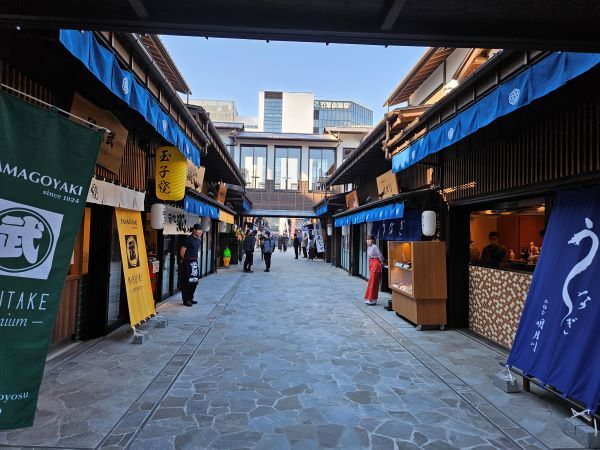 城下町に入るイメージの門をくぐるとある通りが、屋外の「豊洲目抜き大通り」です。