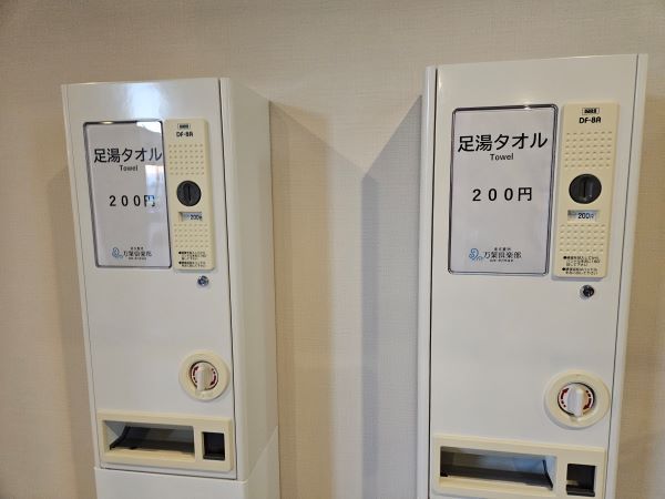 足湯タオルの販売もあります。が、私はハンドタオルを1枚多く持参します。それで十分に足を拭くことができますよ。買い物や食事でよく歩く千客万来施設内に無料の足湯があるのはとても嬉しいです。スッキリとリフレッシュできます。