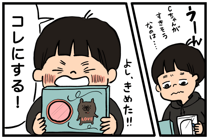 喜ぶCちゃんの顔を見てニヤニヤする息子に、母、またキュンキュンしちゃいました(笑)