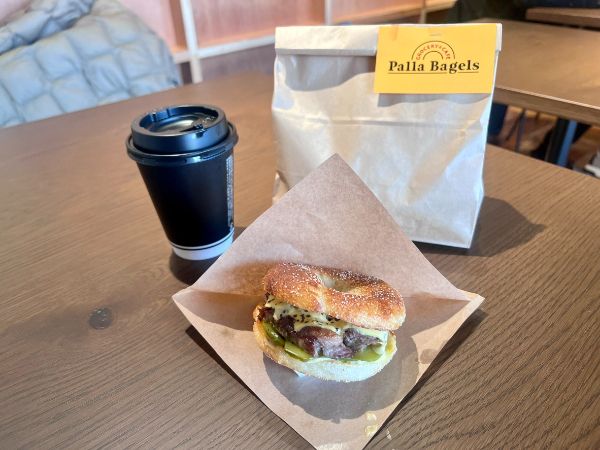 ベーグルがメインと思っていたら、具材も素晴らしかったです。ソルトビーフは香味野菜と一緒に塩漬けにして煮込んだものでその質のよさにびっくり。ざくっとしたベーグルとホロホロのやわらかいお肉の食感のコントラストは必食!ボリューム満点のグルメサンドでした。もちろんテイクアウトも可能です。
