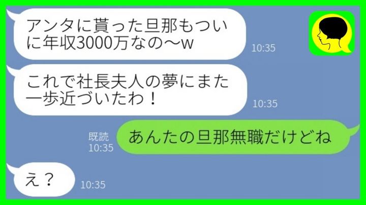 愚痴る相手が私しかいないのか、彼女はまた私に連絡を取ってくるように。「今は無職でもあんたたち負け組夫婦よりはいい生活してるもん」「あんたの旦那なんててせいぜい年収200万程度でしょ、すぐに追い越してやるわ」と、マウントを取って自分を保とうとしている彼女に、さすがの私も辟易。