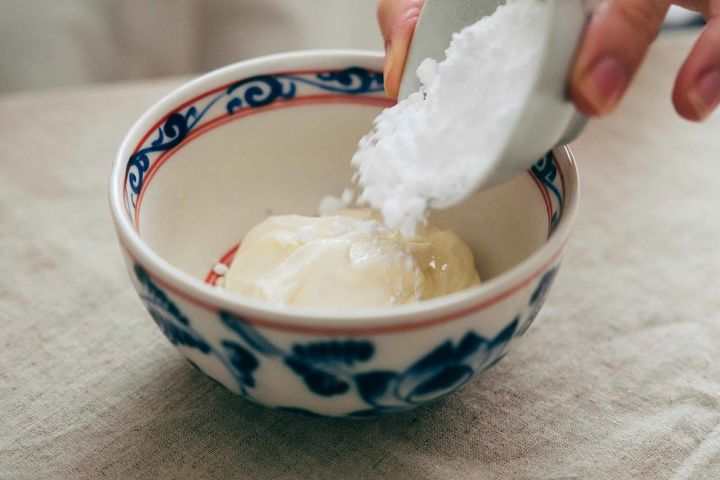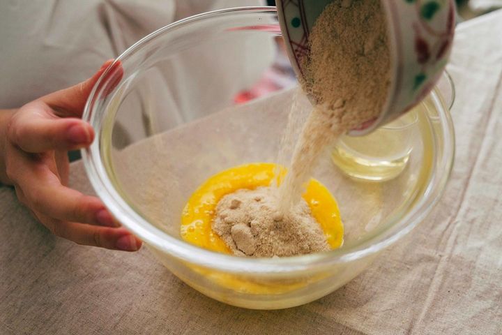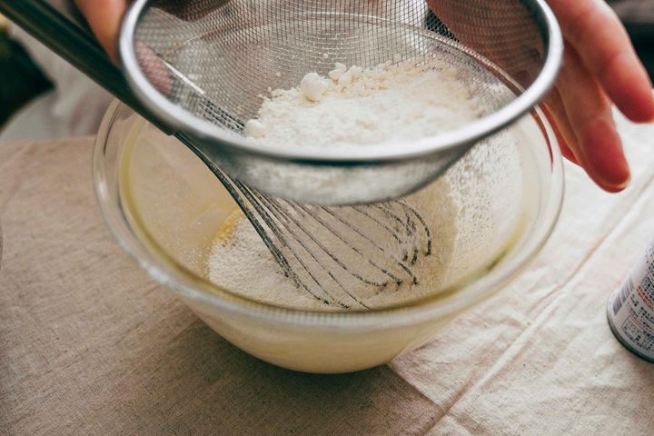 続いては、米油をボウルにイン。分離してしまうので、「少しずつ入れてガッツリ混ぜる」を繰り返すのがおすすめです。全体がしっかり混ざるまでちょっと長めに混ぜ合わせてみてくださいね。