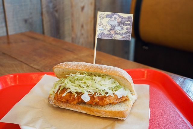 こちらは新メニューの「油淋鶏サンド(850円)」。もっちりした生地で、チキンとキャベツを挟んだサンドイッチです。鶏肉はあっさりしていて癖のない味付け。キャベツが細かく刻まれているので食べやすいです。