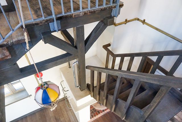12歳以下の子どものみ、2階まで取っ手を使って上がることができます(大人は外の階段を使用)。