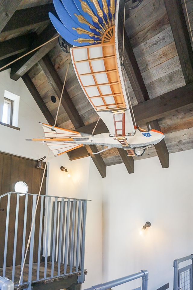 天井には「空飛ぶオーニソプター(羽ばたき飛行機)」が。
