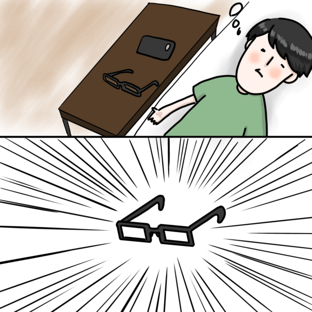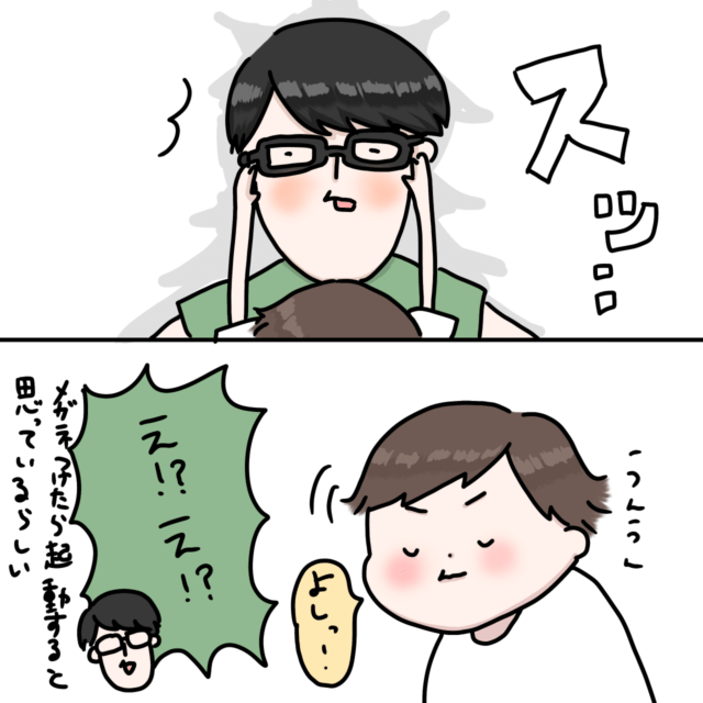 お父さんが動くためのスイッチはメガネと言うことに気付いてしまったのですね(笑)。納得して頷く様子がかわいいです。
