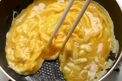 あればかにかまや青ネギ混ぜたりごはんを炒飯にしてもいいですがシンプルなのは卵あればできます。 qa.mamari.jp